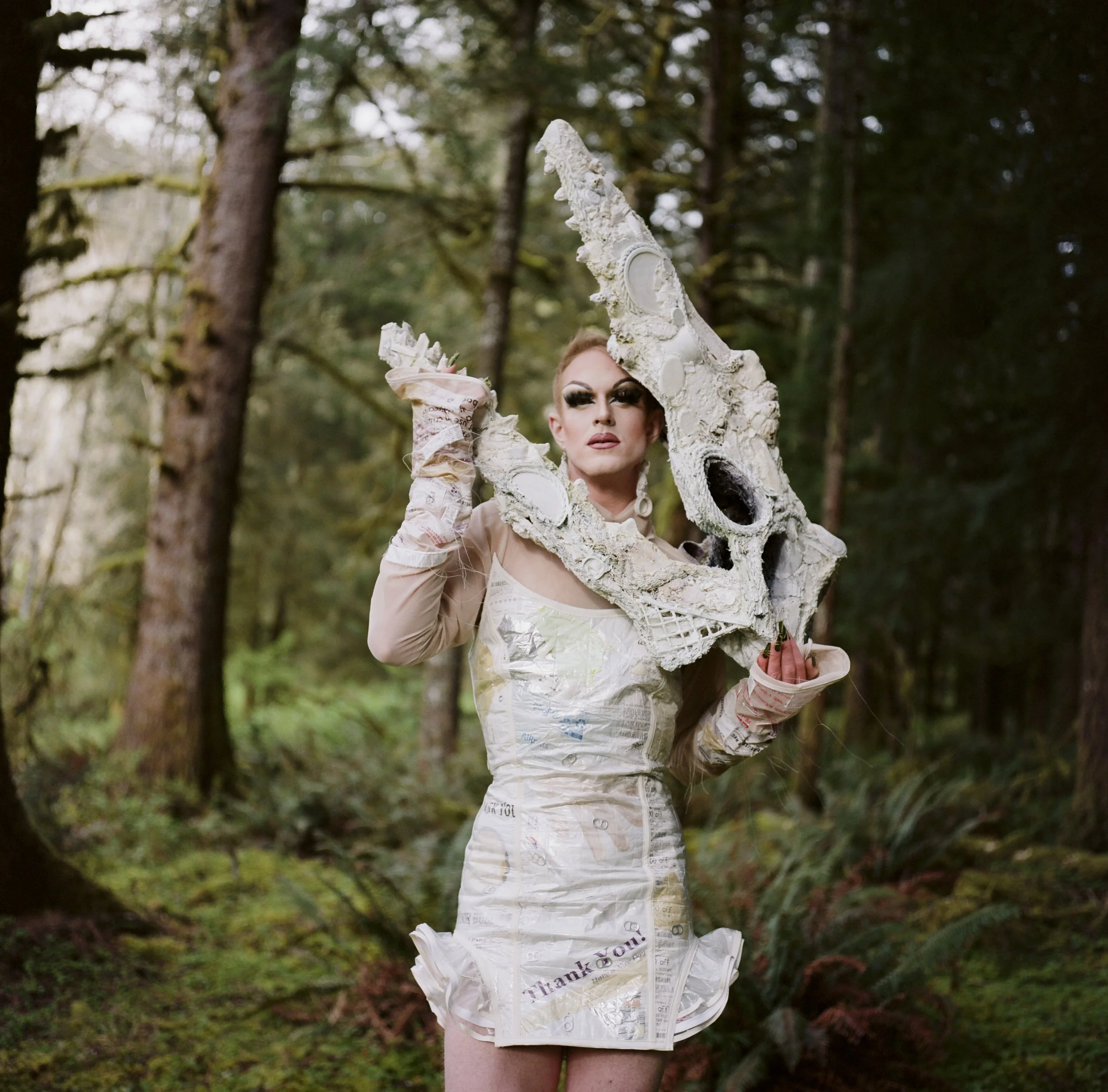 Collaborated with renowned environmental drag queen, Pattie Gonia to create a look entirely from marine debris found in Oregon